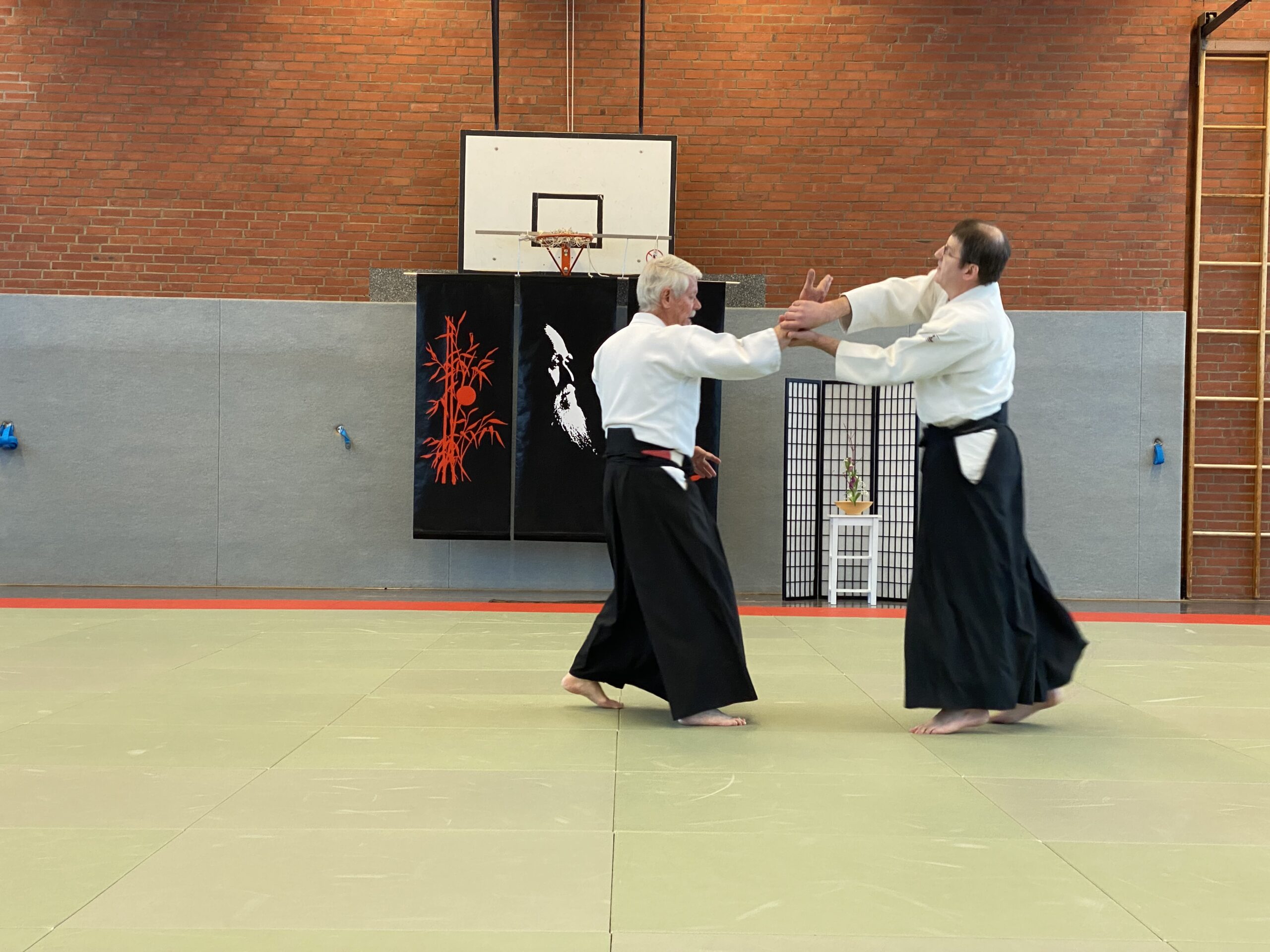 Als Vorbereitung für die technischen Ausführungen begann der Lehrgang nach dem Aufwärmen zunächst mit unterschiedlichen Führungsübungen, um das Gefühl für die Ausweichbewegung und die Verbindung zum Partner zu verbessern.